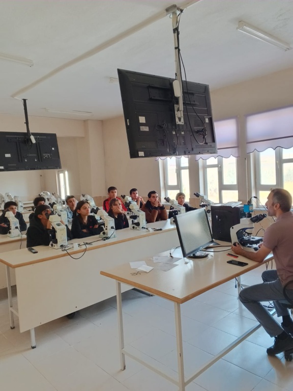 Ziyaret kapsamında öğrencilerimiz, Doç. Dr. Ömer Faruk Keleş hocamızın eşliğinde laboratuvar ortamında preparat hazırlanması ve mikroskopta incelenmesi konularında uygulamalı eğitim aldı.